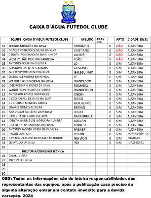 Atletas aptos a jogar no final de semana pela a I Copa União futebol de Altaneira-CE 2024! 183 inscritos para a primeira rodada, Obs:. (ATENÇÃO) Atletas expulsos na última partida da sua equipe na VII Copa do Vale não podem atuar nessa primeira rodada,!